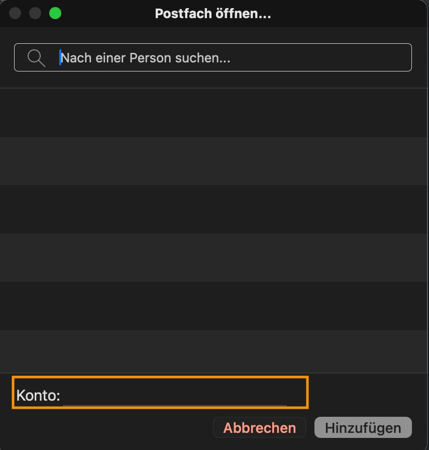 5. Wähle ggf. den Account aus für den das Postfach Freigegeben wurde.